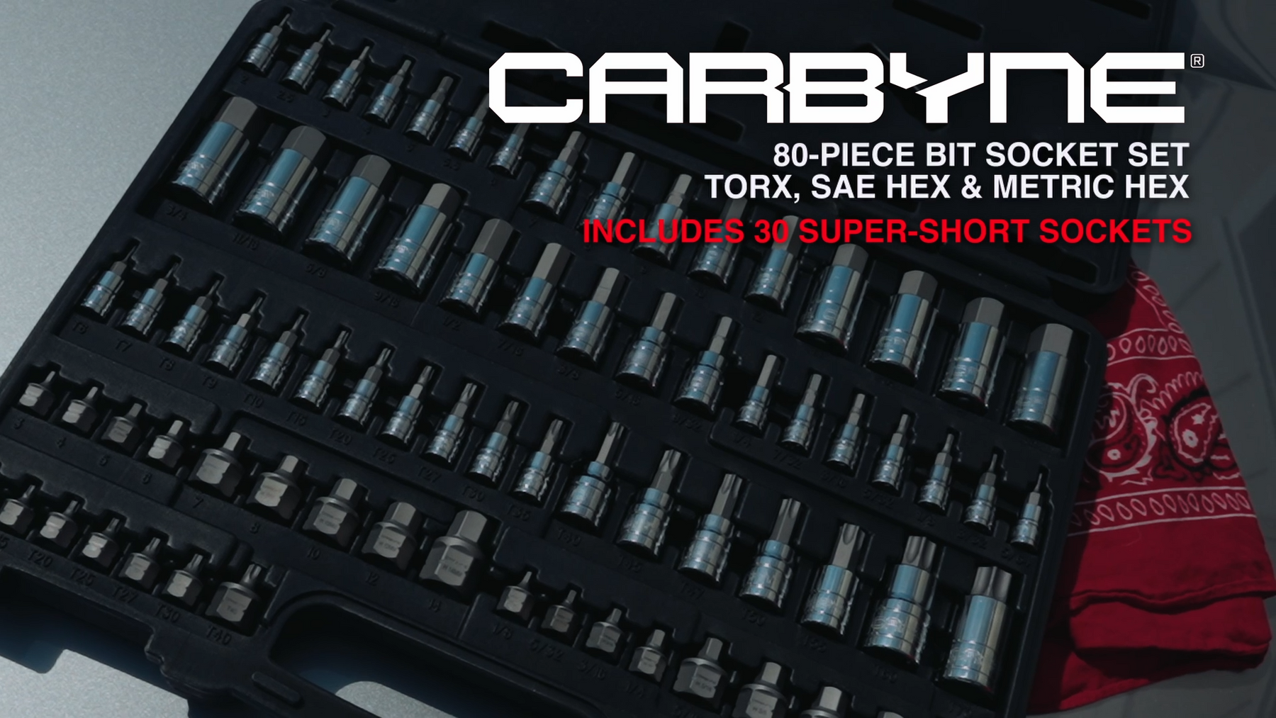 INCLUDED: The Carbyne 80 Piece Master Torx, SAE Hex & Metric Hex Bit Socket Set includes a durable storage case, making it easy to keep your sockets organized and safe. The case is also designed to be portable, so you can take it with you wherever you